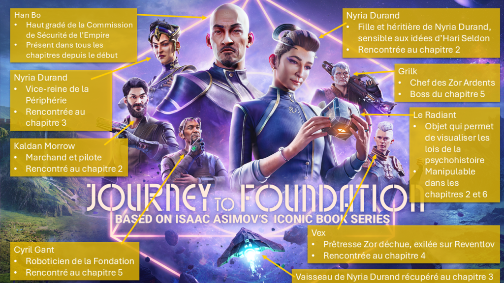 Cette image est très utile pour suivre l’histoire complexe développée par Journey to Foundation.